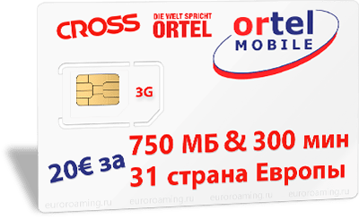 - Сотовый оператор Ortel Mobile подготовил для своих абонентов тариф под названием«Cross», который действует во всей Европе, если точнее – 31 страна. Стоимость пакета услуг на 30 дней – 20 евро. За эти деньги абонент получает 300 минут на разговоры в стране пребывания, а также 750 Мб.