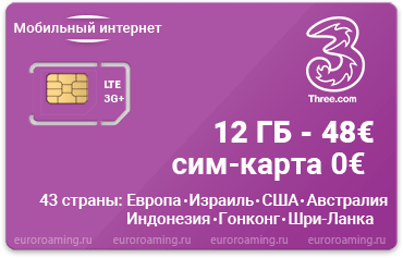 Оператор Three предлагает 12 Гб трафика на месяц.