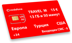 Vodafone – один из самых популярных вариантов для путешествий по Европе, Турции, Великобритании, Швейцарии, Косово, Монако и даже США.