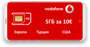 - Если нужен не только Интернет, но и голосовые услуги, то в этом случае лучше выбрать симку от Vodafone предлагает услуги не только в европейских странах, но и в США и Турции. Подключается пакет Yuser 5 ГБ за 10€ сроком на 28 дней + вонки внутри Зоны действия 15 минут включены в пакет, Входящие в ЕС — 0€